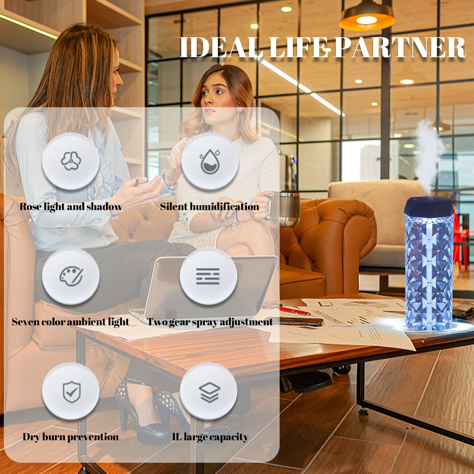 Function: atmosphere lamp, small night light, humidifier